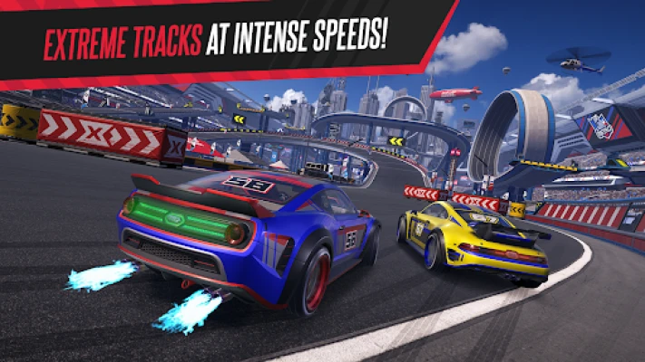 Launch your car over huge jumps, skillfully manoeuvre through enormous loops, and defy gravity on magnetic asphalt at maximum speeds.
